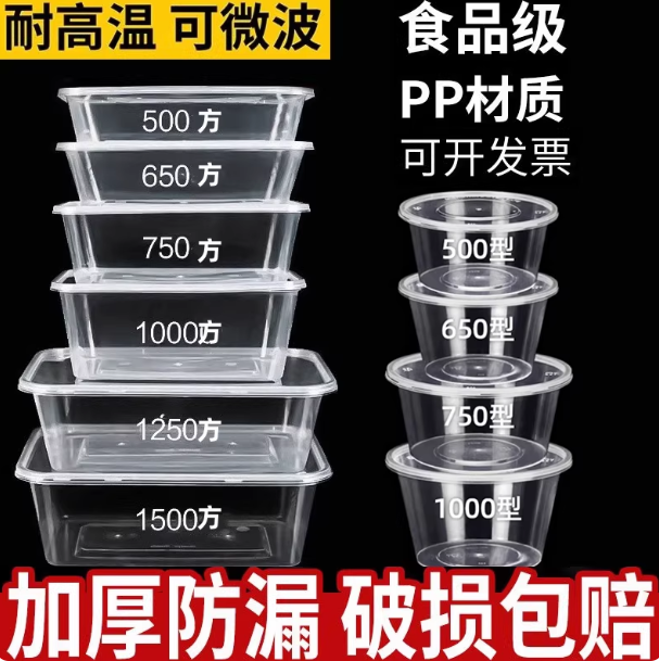 圆形净菜商用打包盒快餐长方形饭盒塑料汤碗加厚透明
