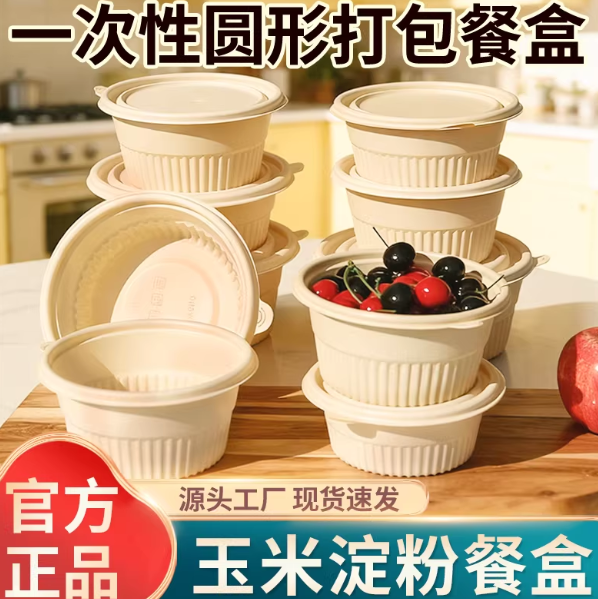 可降解一次性餐盒玉米淀粉餐盒环保外卖圆形带盖打包食品级圆碗