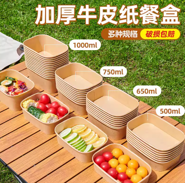牛皮纸净菜方形打包盒水果快餐饭盒轻食野餐便当纸盒沙拉盒