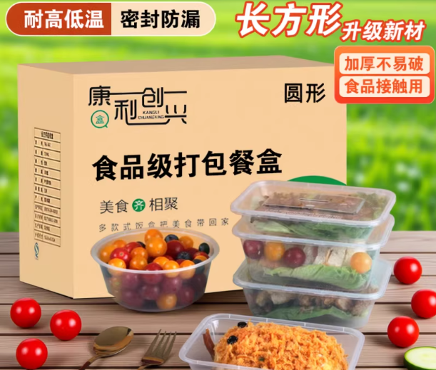 菜咕咕净菜饭盒打包盒长方形圆形塑料餐盒大容量外卖快餐带盖
