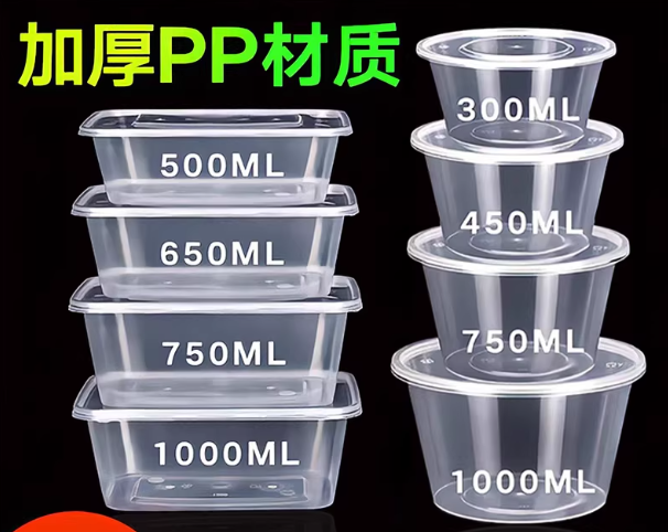 圆形净菜商用打包盒快餐长方形饭盒塑料汤碗加厚透明
