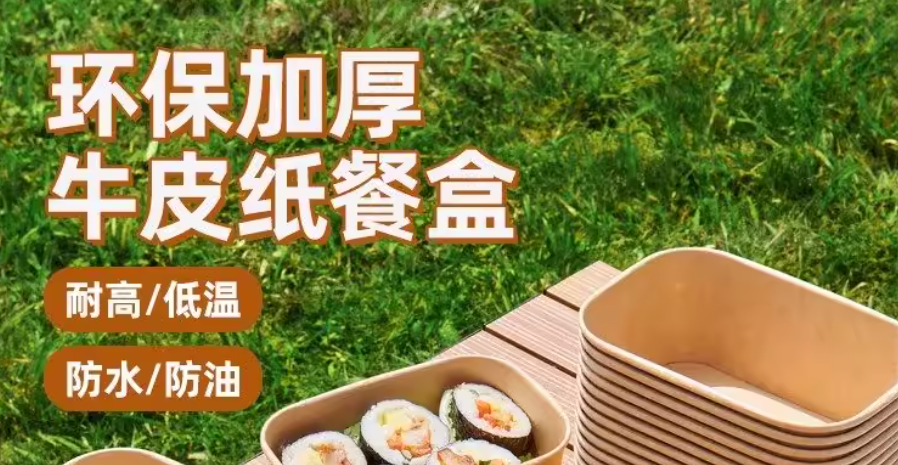 牛皮纸净菜方形打包盒水果快餐饭盒轻食野餐便当纸盒沙拉盒